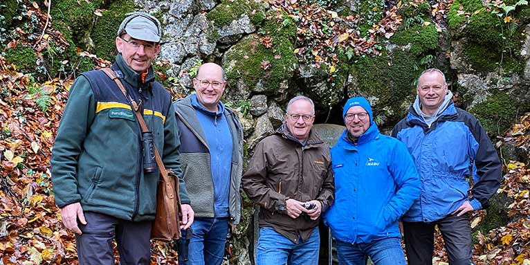 Gemeinsam mit dem NABU-Landesvorsitzenden Johannes Enssle besuchte Stoch zunächst die Hessenloch-Höhle bei Königsbronn. Sie ist eines der Top 10-Winterquartiere für das Große Mausohr in Baden-Württemberg. Bis zu 900 Fledermäuse tummeln sich dort in der kalten Jahreszeit. Auch der Dachstuhl einer Kirche im nahen Lauchheim beherbergt das Große Mausohr – dort versammeln sich jedes Sommerhalbjahr rund 1.700 Weibchen zu einer der größten Wochenstuben dieser Art im Land. Hinzu kommen 500 Fledermauskästen für die nächtlichen Insektenjäger. Viele Jahre ehrenamtlicher Naturschutz zahlen sich hier aus.