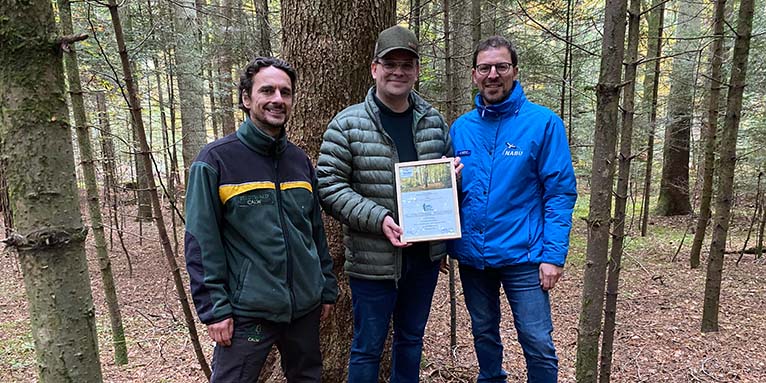 Oberbürgermeister Kling erklärte: „Für unsere Stadt ist der Wald Lebens- und Erlebnisraum, den wir mit Bedacht hegen und pflegen. Er ist ein ganz besonderer Schatz, den wir für nachfolgende Generationen erhalten möchten. Die Auszeichnung des NABU ist für uns Ansporn und Verpflichtung zugleich, den erfolgreichen Weg auch in Zukunft engagiert weiterzugehen.“ Revierförster Kollmannsberger ergänzte: „Ein solcher Wald mit seinen Schutzgütern erfordert einen kenntnisreichen und gewissenhaften Umgang. Damit dies auch in Zukunft gelingt, verfolgen wir ein naturgemäßes Betriebsmodell, bei dem die verschiedenen Waldfunktionen im Einklang stehen. Zudem setzen wir auf eigenes Personal und bilden selbst aus.“
